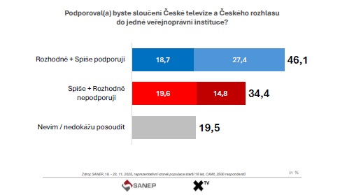 Průzkum SANEP se věnoval i debatě o možném sloučení České televize a Českého rozhlasu do jedné veřejnoprávní instituce. Téma se v tuzemské politice opakovaně vrací, mimo jiné s argumentem možných úspor.