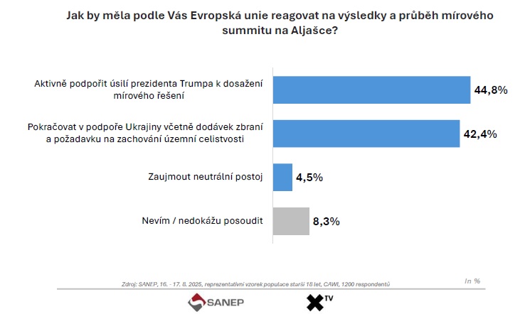 Z metodologického hlediska je třeba připomenout, že šlo o bleskový průzkum na reprezentativním vzorku 1 200 respondentů realizovaný online metodou CAWI. Deklarovaná statistická odchylka ±1,5 procentního bodu umožňuje považovat výsledky za spolehlivé. Současně je však nutné vnímat, že šlo o průzkum zachycující nálady v konkrétním okamžiku, tedy bezprostředně po oznámení summitu, a vnímání výsledků či důsledků summitu se může v dalších týdnech výrazně proměnit.