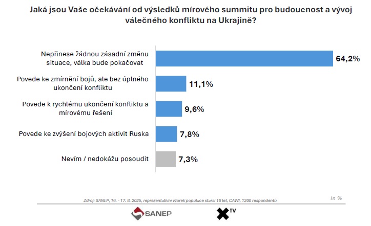 Celkově lze říci, že průzkum společnosti SANEP potvrzuje, že česká veřejnost očekává od summitu na Aljašce spíše symbolickou než reálnou změnu. Skepsi k možnosti rychlého ukončení války sdílí dvě třetiny obyvatel, přičemž většina je přesvědčena, že skutečným vítězem bude Vladimir Putin.