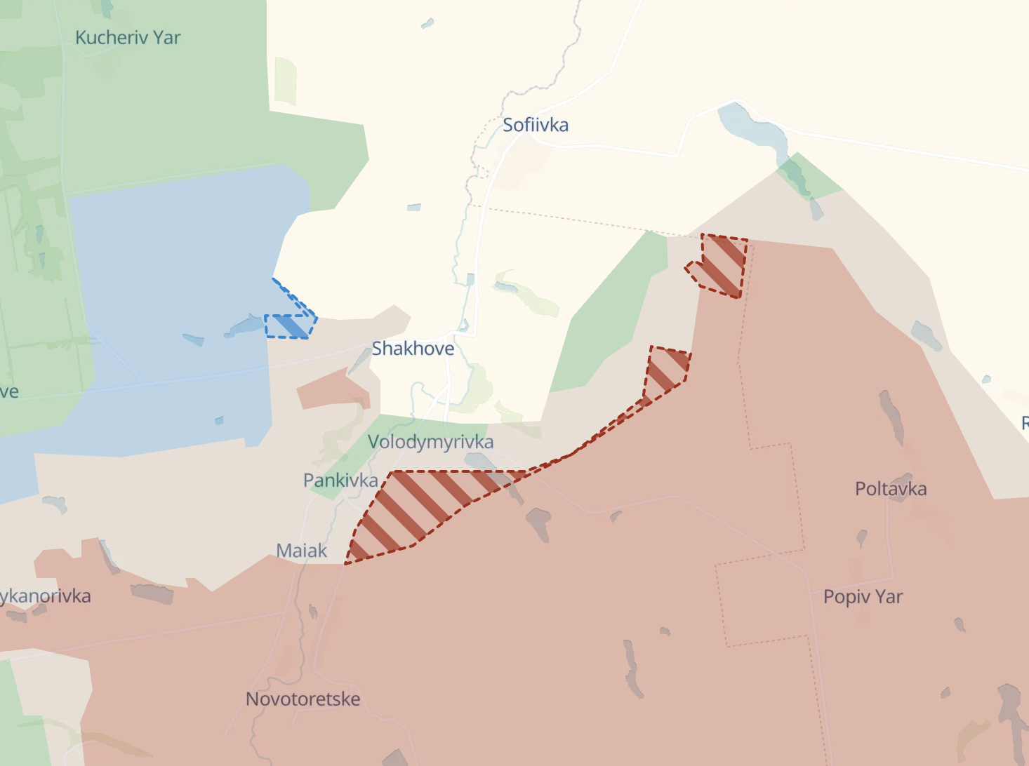 Podle mapy Deep State se „šedá zóna“ kolem Pokrovska a Mirnogradu výrazně rozšířila. Mimo jiné severně od Pokrovska k dálnici z Grišina, kterou jsou dopravovány zásoby ukrajinské posádce ve městě.