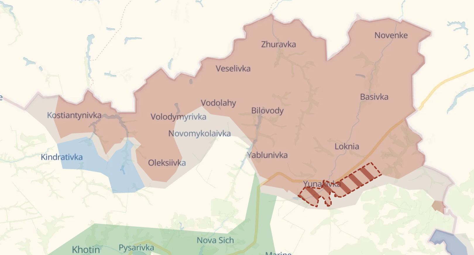 Tato osada se nachází mezi Sosnovkou a Voronojem. Ukrajinská vojenská veřejnost Deep State informovala o ruském postupu tímto směrem. Na mapě veřejnosti se vesnice nachází částečně v šedé zóně, částečně pod ruskou kontrolou.